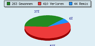 2 Partien am laufen 717 Partien beendet 263 Partien gewonnen: 61 durch Matt 163 durch Aufgabe 38 durch Zeitüberschreitung 1 durch Abbruch 410 Partien verloren: 24 durch Matt 385 durch Aufgabe 1 durch Zeitüberschreitung (= 0.1% ZÜ-Quote) 44 Partien remisiert