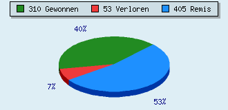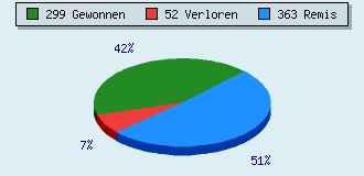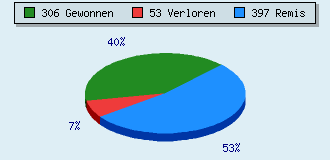 13 Partien am laufen 768 Partien beendet 310 Partien gewonnen: 21 durch Matt 247 durch Aufgabe 39 durch Zeitüberschreitung 3 durch Abbruch 53 Partien verloren: 0 durch Matt 51 durch Aufgabe 2 durch Zeitüberschreitung (= 0.3% ZÜ-Quote) 405 Partien remisiert