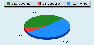 7 Partien am laufen 781 Partien beendet 311 Partien gewonnen: 21 durch Matt 248 durch Aufgabe 39 durch Zeitüberschreitung 3 durch Abbruch 53 Partien verloren: 0 durch Matt 51 durch Aufgabe 2 durch Zeitüberschreitung (= 0.3% ZÜ-Quote) 417 Partien remisiert