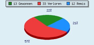 0 Partien am laufen 58 Partien beendet 13 Partien gewonnen: 0 durch Matt 11 durch Aufgabe 1 durch Zeitüberschreitung 1 durch Abbruch 33 Partien verloren: 0 durch Matt 25 durch Aufgabe 8 durch Zeitüberschreitung (= 13.8% ZÜ-Quote) 12 Partien remisiert