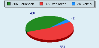 7 Partien am laufen 938 Partien beendet 416 Partien gewonnen: 137 durch Matt 243 durch Aufgabe 36 durch Zeitüberschreitung 475 Partien verloren: 220 durch Matt 255 durch Aufgabe 0 durch Zeitüberschreitung (= 0% ZÜ-Quote) 47 Partien remisiert
