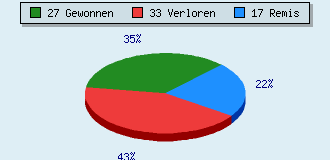 0 Partien am laufen 77 Partien beendet 27 Partien gewonnen: 2 durch Matt 17 durch Aufgabe 6 durch Zeitüberschreitung 2 durch Abbruch 33 Partien verloren: 0 durch Matt 14 durch Aufgabe 19 durch Zeitüberschreitung (= 24.7% ZÜ-Quote) 17 Partien remisiert
