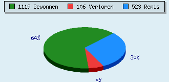 1 Partien am laufen 1748 Partien beendet 1119 Partien gewonnen: 160 durch Matt 892 durch Aufgabe 65 durch Zeitüberschreitung 2 durch Abbruch 106 Partien verloren: 1 durch Matt 87 durch Aufgabe 18 durch Zeitüberschreitung (= 1% ZÜ-Quote) 523 Partien remisiert