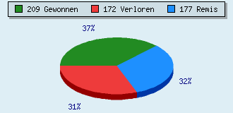0 Partien am laufen 558 Partien beendet 209 Partien gewonnen: 30 durch Matt 149 durch Aufgabe 29 durch Zeitüberschreitung 1 durch Abbruch 172 Partien verloren: 2 durch Matt 170 durch Aufgabe 0 durch Zeitüberschreitung (= 0% ZÜ-Quote) 177 Partien remisiert