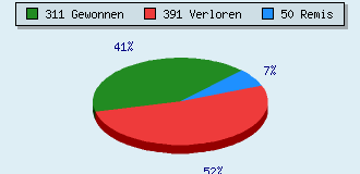 4 Partien am laufen 752 Partien beendet 311 Partien gewonnen: 42 durch Matt 218 durch Aufgabe 51 durch Zeitüberschreitung 391 Partien verloren: 32 durch Matt 285 durch Aufgabe 74 durch Zeitüberschreitung (= 9.8% ZÜ-Quote) 50 Partien remisiert