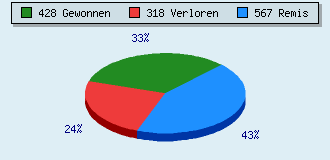 27 Partien am laufen 1313 Partien beendet 428 Partien gewonnen: 24 durch Matt 282 durch Aufgabe 121 durch Zeitüberschreitung 1 durch Abbruch 318 Partien verloren: 0 durch Matt 262 durch Aufgabe 56 durch Zeitüberschreitung (= 4.3% ZÜ-Quote) 567 Partien remisiert