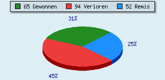 0 Partien am laufen 211 Partien beendet 65 Partien gewonnen: 12 durch Matt 44 durch Aufgabe 9 durch Zeitüberschreitung 94 Partien verloren: 0 durch Matt 88 durch Aufgabe 6 durch Zeitüberschreitung (= 2.8% ZÜ-Quote) 52 Partien remisiert