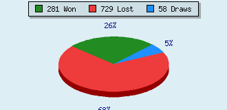 2 Partien am laufen 1093 Partien beendet 289 Partien gewonnen: 70 durch Matt 125 durch Aufgabe 92 durch Zeitüberschreitung 2 durch Abbruch 746 Partien verloren: 29 durch Matt 560 durch Aufgabe 157 durch Zeitüberschreitung (= 14.4% ZÜ-Quote) 58 Partien remisiert