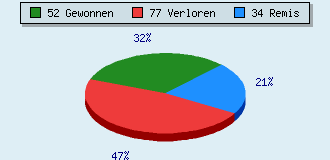 3 Partien am laufen 196 Partien beendet 64 Partien gewonnen: 2 durch Matt 49 durch Aufgabe 12 durch Zeitüberschreitung 1 durch Abbruch 78 Partien verloren: 4 durch Matt 73 durch Aufgabe 1 durch Zeitüberschreitung (= 0.5% ZÜ-Quote) 54 Partien remisiert