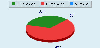 0 Partien am laufen 12 Partien beendet 4 Partien gewonnen: 1 durch Matt 2 durch Aufgabe 0 durch Zeitüberschreitung 1 durch Abbruch 8 Partien verloren: 4 durch Matt 3 durch Aufgabe 1 durch Zeitüberschreitung (= 8.3% ZÜ-Quote) 0 Partien remisiert