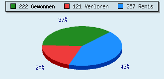 0 Partien am laufen 600 Partien beendet 222 Partien gewonnen: 15 durch Matt 172 durch Aufgabe 34 durch Zeitüberschreitung 1 durch Abbruch 121 Partien verloren: 0 durch Matt 80 durch Aufgabe 41 durch Zeitüberschreitung (= 6.8% ZÜ-Quote) 257 Partien remisiert