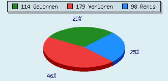 0 Partien am laufen 391 Partien beendet 114 Partien gewonnen: 14 durch Matt 77 durch Aufgabe 22 durch Zeitüberschreitung 1 durch Abbruch 179 Partien verloren: 0 durch Matt 143 durch Aufgabe 36 durch Zeitüberschreitung (= 9.2% ZÜ-Quote) 98 Partien remisiert
