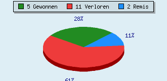 0 Partien am laufen 18 Partien beendet 5 Partien gewonnen: 0 durch Matt 4 durch Aufgabe 1 durch Zeitüberschreitung 11 Partien verloren: 0 durch Matt 11 durch Aufgabe 0 durch Zeitüberschreitung (= 0% ZÜ-Quote) 2 Partien remisiert