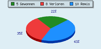0 Partien am laufen 23 Partien beendet 5 Partien gewonnen: 0 durch Matt 5 durch Aufgabe 0 durch Zeitüberschreitung 8 Partien verloren: 0 durch Matt 8 durch Aufgabe 0 durch Zeitüberschreitung (= 0% ZÜ-Quote) 10 Partien remisiert