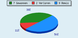0 Partien am laufen 18 Partien beendet 7 Partien gewonnen: 0 durch Matt 7 durch Aufgabe 0 durch Zeitüberschreitung 2 Partien verloren: 0 durch Matt 2 durch Aufgabe 0 durch Zeitüberschreitung (= 0% ZÜ-Quote) 9 Partien remisiert