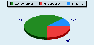 0 Partien am laufen 24 Partien beendet 15 Partien gewonnen: 2 durch Matt 13 durch Aufgabe 0 durch Zeitüberschreitung 6 Partien verloren: 0 durch Matt 5 durch Aufgabe 1 durch Zeitüberschreitung (= 4.2% ZÜ-Quote) 3 Partien remisiert