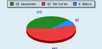 0 Partien am laufen 76 Partien beendet 28 Partien gewonnen: 4 durch Matt 23 durch Aufgabe 1 durch Zeitüberschreitung 42 Partien verloren: 3 durch Matt 36 durch Aufgabe 3 durch Zeitüberschreitung (= 3.9% ZÜ-Quote) 6 Partien remisiert