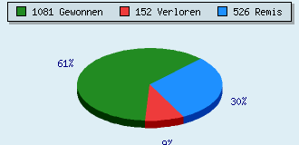 72 Partien am laufen 1759 Partien beendet 1081 Partien gewonnen: 223 durch Matt 720 durch Aufgabe 137 durch Zeitüberschreitung 1 durch Abbruch 152 Partien verloren: 1 durch Matt 133 durch Aufgabe 18 durch Zeitüberschreitung (= 1% ZÜ-Quote) 526 Partien remisiert