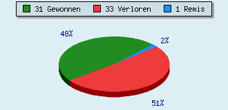 0 Partien am laufen 65 Partien beendet 31 Partien gewonnen: 18 durch Matt 12 durch Aufgabe 1 durch Zeitüberschreitung 33 Partien verloren: 17 durch Matt 16 durch Aufgabe 0 durch Zeitüberschreitung (= 0% ZÜ-Quote) 1 Partien remisiert