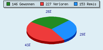 7 Partien am laufen 526 Partien beendet 146 Partien gewonnen: 10 durch Matt 95 durch Aufgabe 39 durch Zeitüberschreitung 2 durch Abbruch 227 Partien verloren: 1 durch Matt 221 durch Aufgabe 5 durch Zeitüberschreitung (= 1% ZÜ-Quote) 153 Partien remisiert