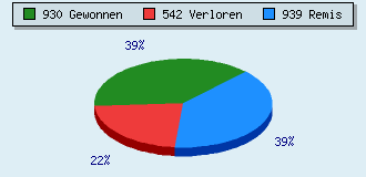 22 Partien am laufen 2411 Partien beendet 930 Partien gewonnen: 110 durch Matt 714 durch Aufgabe 103 durch Zeitüberschreitung 3 durch Abbruch 542 Partien verloren: 16 durch Matt 517 durch Aufgabe 9 durch Zeitüberschreitung (= 0.4% ZÜ-Quote) 939 Partien remisiert
