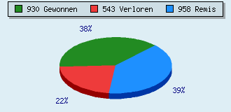 19 Partien am laufen 2431 Partien beendet 930 Partien gewonnen: 110 durch Matt 714 durch Aufgabe 103 durch Zeitüberschreitung 3 durch Abbruch 543 Partien verloren: 16 durch Matt 518 durch Aufgabe 9 durch Zeitüberschreitung (= 0.4% ZÜ-Quote) 958 Partien remisiert